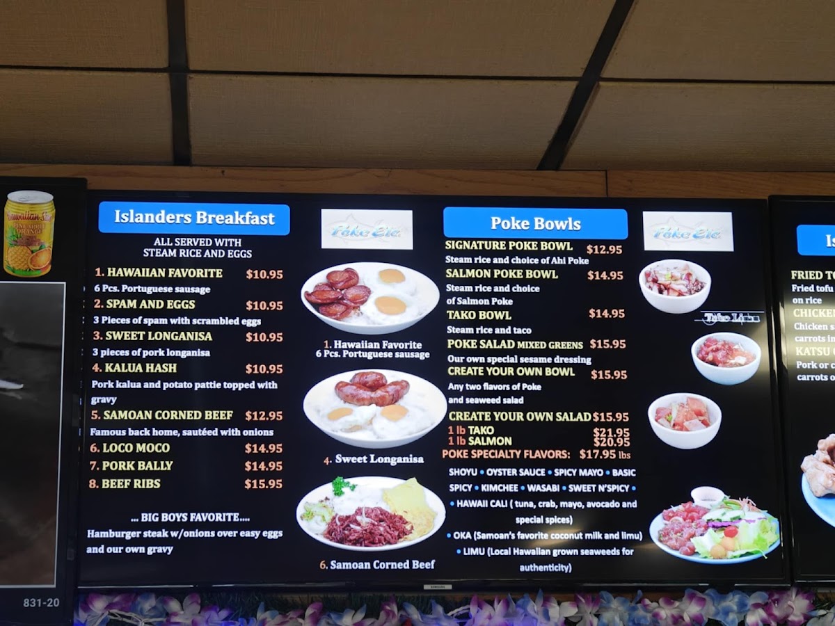 - Island Favorites: Don't miss the Beef Ribs with poke, a customer favorite, blending hearty flavors with a Hawaiian twist.